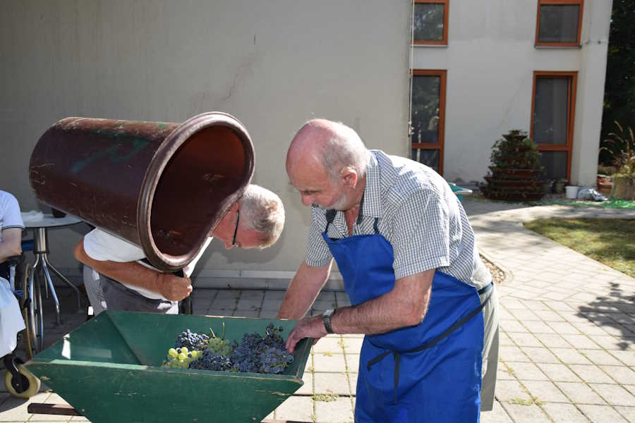 V mesecu septembru smo imeli tudi trgatev, ki že od nekdaj velja za velik praznik. Cel teden smo se pripravljali na ta dan, moški so pripravili posodo za grozdje, posodo za vino, pripravili so prešo, kuhinja pa je poskrbela za vse dobrote, ki ne smejo manjkati na ta dan. Ob dogovorjeni uri so prišli vsi povabljeni brači in muzikanti, s skupnimi močmi smo delo dobro opravili.
