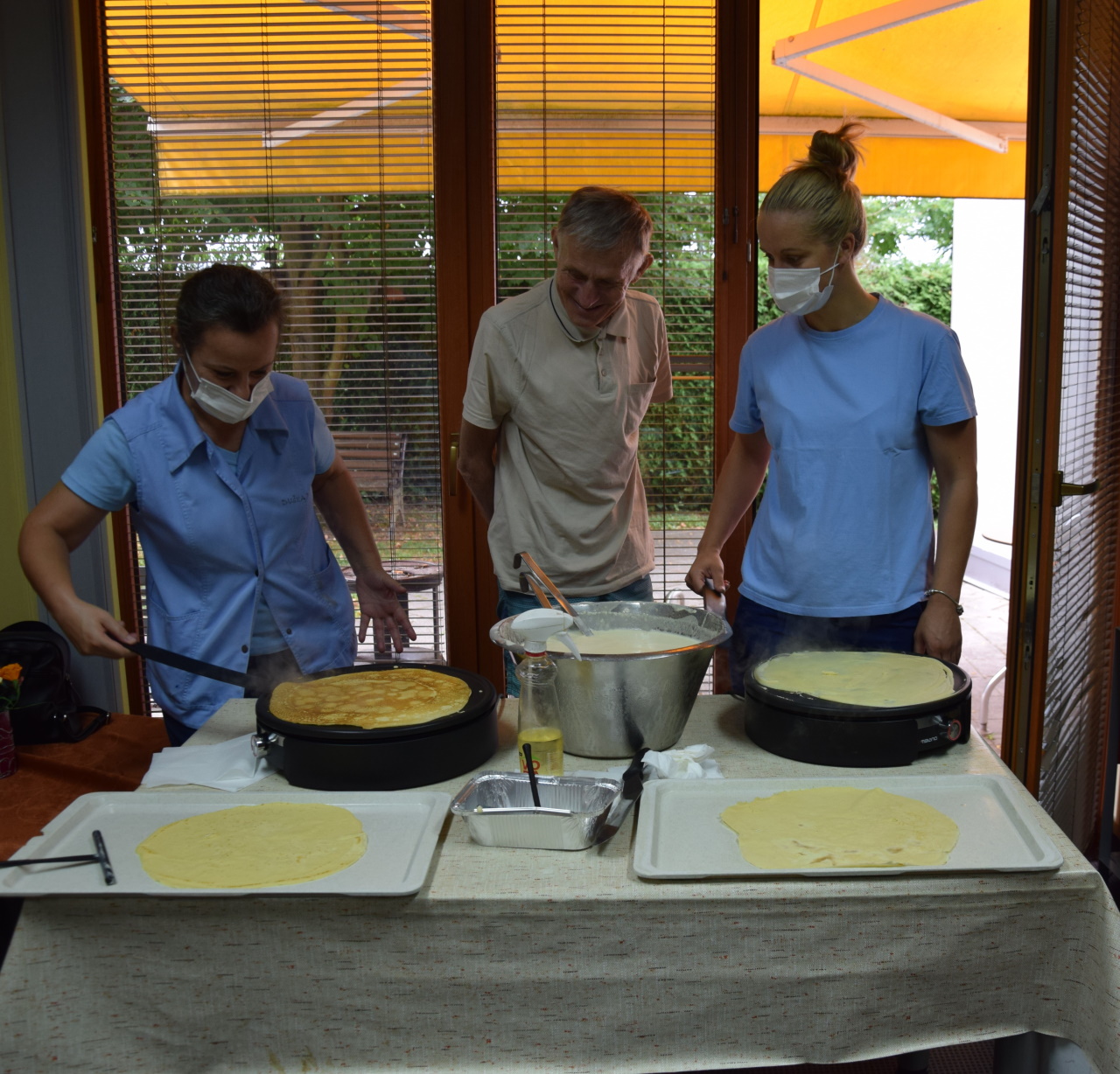 Tokratno sredo smo se sladkali z odličnimi domačimi palačinkami. Eni so jih želeli z marmelado, drugi s čokolado in tretji kar brez vsega. Zraven palačink se je prilegla še dobra kava. S pesmijo smo zaključili prijetno dopoldne in vsi že komaj čakamo naslednjo sredo.